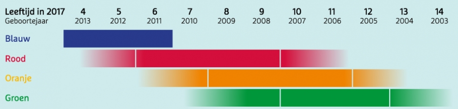 Uitleg blauw, rood, oranje en groen